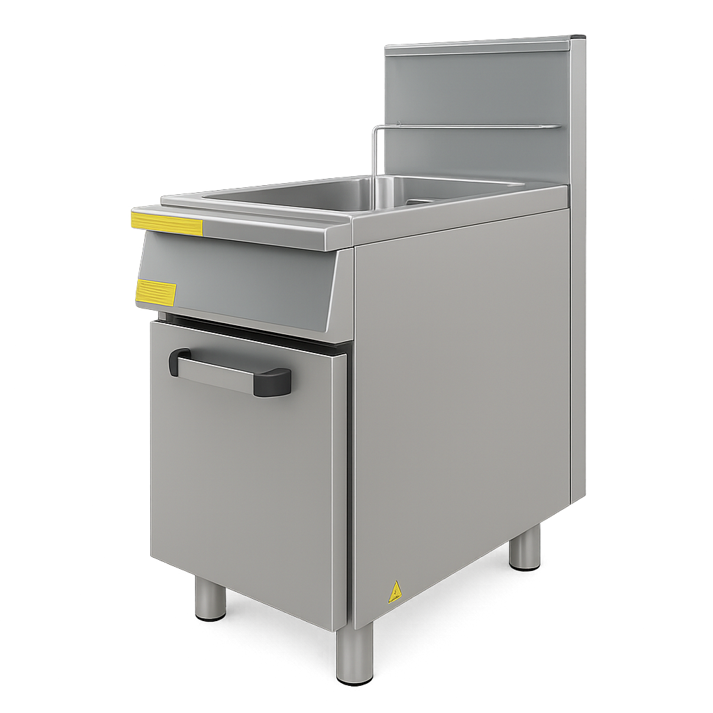 Friteuse électrique professionnelle sur coffre – Série 900 (22 litres) Cette friteuse en acier inoxydable est spécialement conçue pour répondre aux exigences des cuisines professionnelles. Elle offre une grande capacité de cuisson avec ses 22 litres et garantit des fritures homogènes grâce à ses 3 résistances par cuve.
